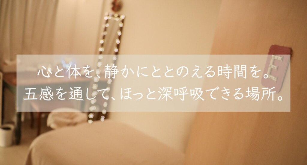 空間・音・香り・光など、 五感を通して心地よく整うよう、 その日のお客様に合わせて整えています。